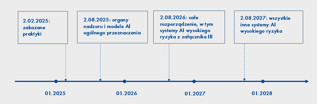 Pomimo tego, że Akt o Sztucznej Inteligencji został przyjęty przez UE już w czerwcu 2024 roku, wchodzi on w życie stopniowo. Zakaz dotyczący części systemów AI wysokiego ryzyka zaczął obowiązywać dopiero 2 lutego 2025, a wprowadzenie całości nowych przepisów zaplanowane jest na 2 sierpnia 2027. Do tego warto dodać, że Unia Europejska już informuje o przyszłych zmianach w legislacji, co może ułatwić firmom dostosowanie swoich systemów. Dla przykładu, w 2028 roku Komisja Europejska będzie oceniać regulacje dotyczące sztucznej inteligencji już po ich pełnym wprowadzeniu.